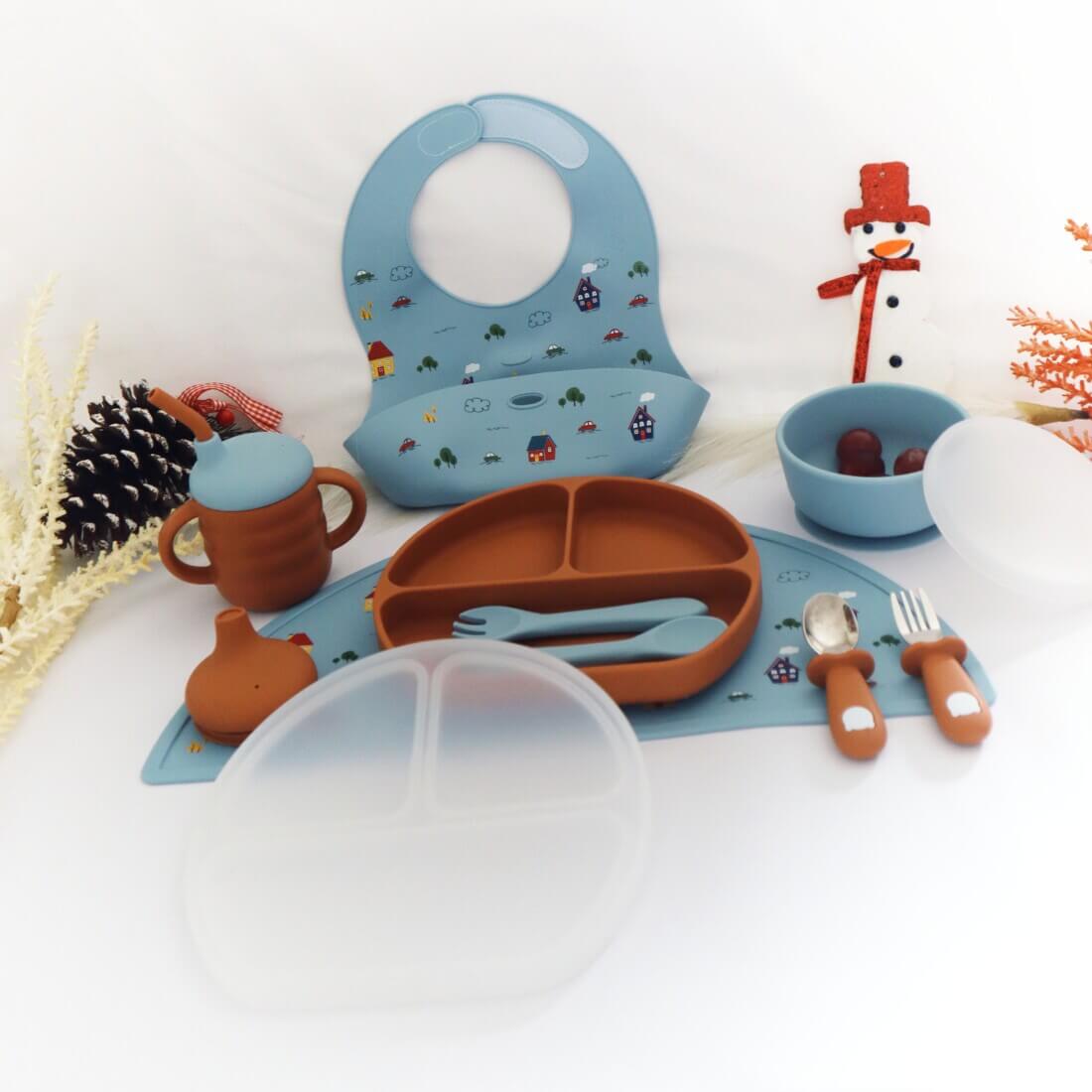 Σετ Φαγητού από Σιλικόνη με Αντιολισθητική Βάση, σουπλά και εκπαιδευτικό μπιμπερό σιλικόνης (12τμχ)