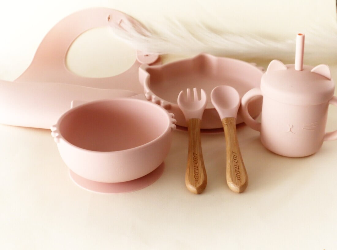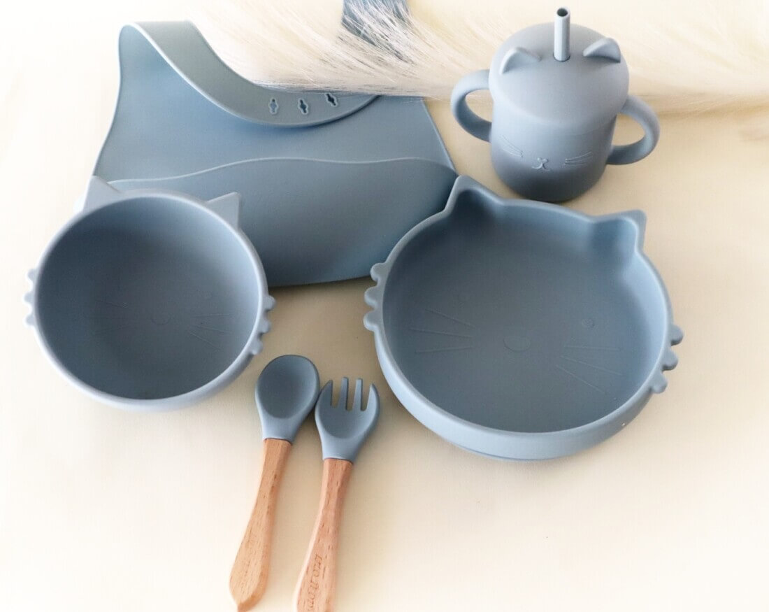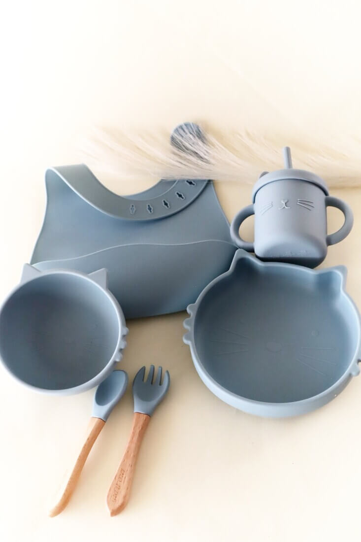 Περιεχόμενα Σετ: Πιάτο kitty, Mπολ kitty, Σαλιάρα, Ποτήρι με καλαμάκι, Κουτάλι και πιρούνι από σιλικόνη με λαβή από μπαμπού.